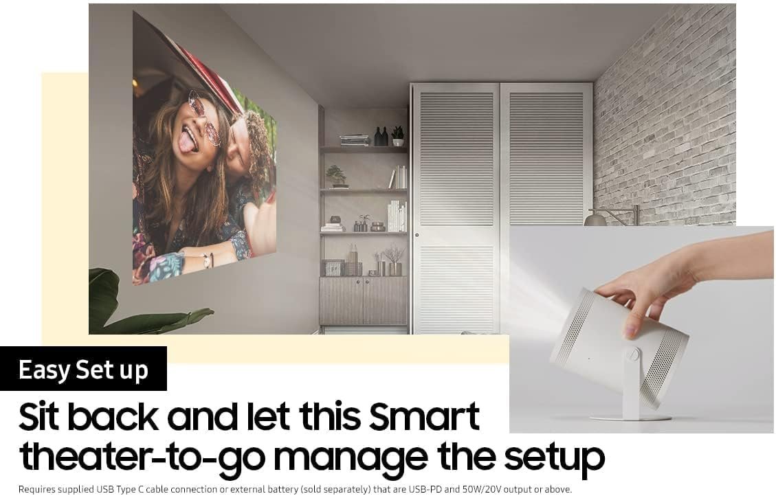 While Stocks Last:SAMSUNG 30″ – 100″ The Freestyle FHD HDR Smart Portable Projector for Indoor and Outdoor Home Theater, Big Screen Experience with Premium 360 Sound w/ Alexa Built-In (SP-LSP3BLAXZA)